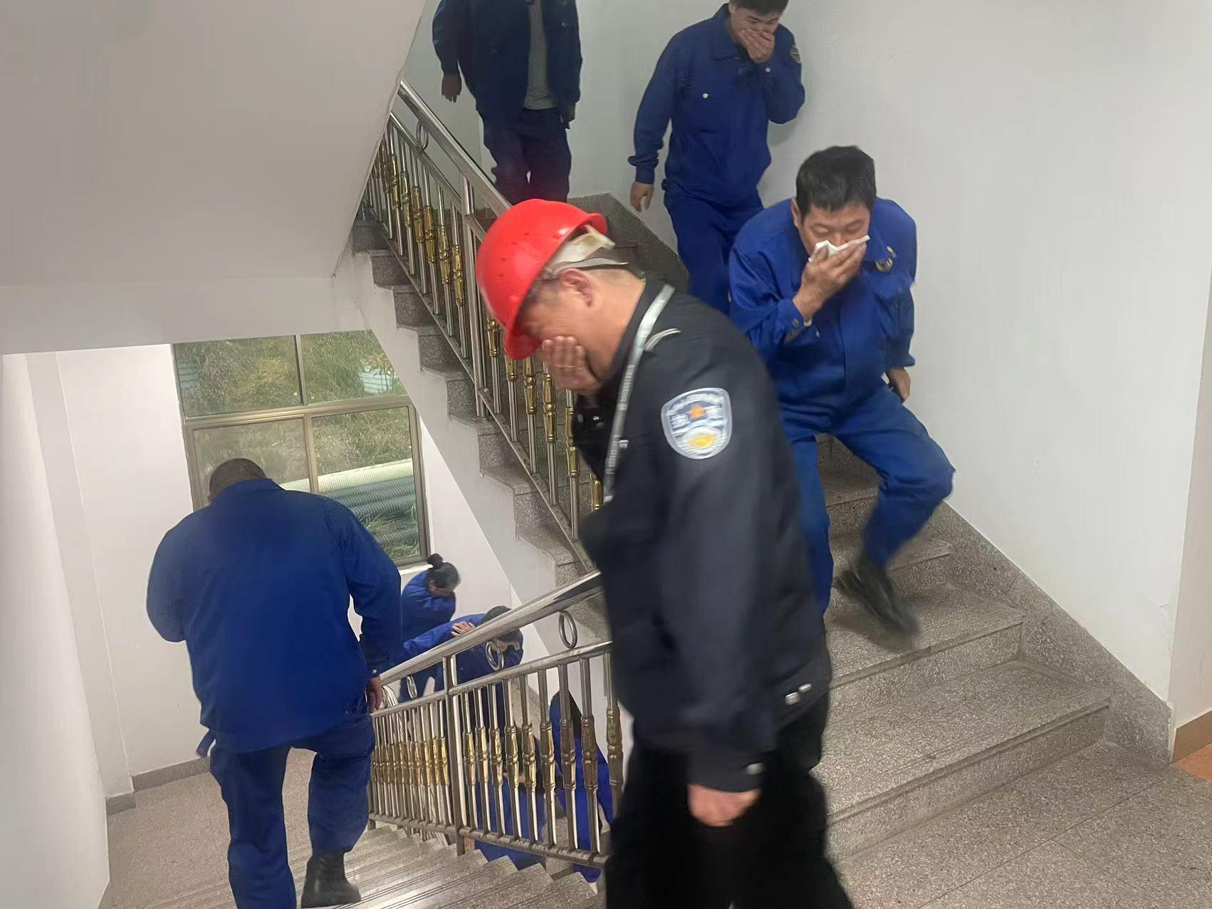演練正式開(kāi)始,模擬員工宿舍濃煙升起,火警報(bào)警聲響起,全體員工按照《消防應(yīng)急疏散預(yù)案》的要求,彎著腰,捂著口鼻,按指定安全消防通道,有序撤離至安全地點(diǎn)。