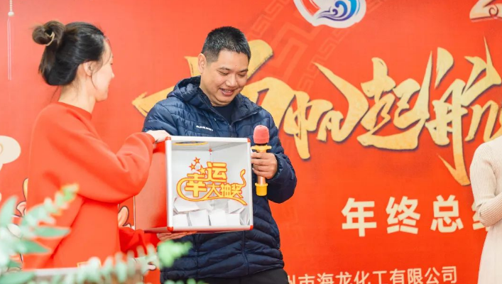 賴仕??偨?jīng)理為海龍化工優(yōu)秀團(tuán)隊(duì)(財(cái)務(wù)部)頒獎(jiǎng)