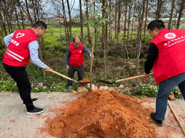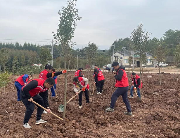 植樹(shù)現(xiàn)場(chǎng),大家干勁十足,揮鍬鏟土、扶樹(shù)定根、培實(shí)新土,澆水灌溉,用心種下一顆顆樹(shù)苗。在全體人員的團(tuán)結(jié)協(xié)作下,共種下樹(shù)苗數(shù)十顆,以實(shí)際行動(dòng)踐行“綠水青山就是金山銀山”的生態(tài)文明理念,為推動(dòng)家鄉(xiāng)綠化、打造綠美生態(tài)貢獻(xiàn)一份力量。